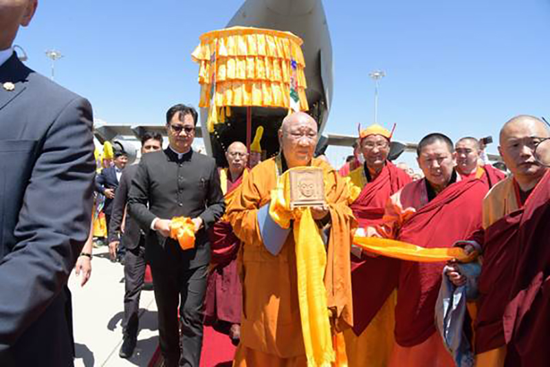 The holy relics were received with great reverence and ceremoniously at the Ulaanbaatar International Airport by the Ch Nomin,Culture Minister of Mongolia; Saranchimeg,MP/Chairperson of India Mongolia Friendship Group; Advisor to the President of Mongolia, Khamba Nomun Khan and a large number of monks among other dignitaries.