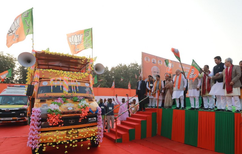 In the morning, Shah flagged off Jana Biswas Yatra on a chariot at Dharmanagar in North Tripura followed by addressing a rally. T