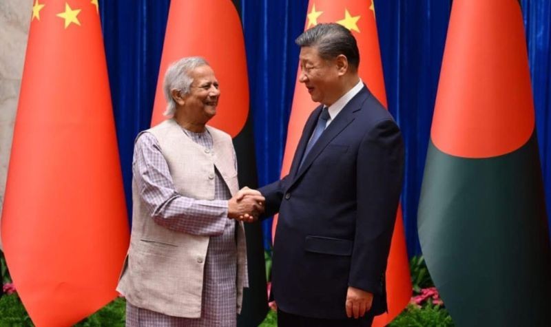 Muhammad Yunus (L) with China's President Xi Jinping (R) during the Bangladesh interim government advisor's recent visit to Beijing. Photo courtesy: X/@ChiefAdviserGoB