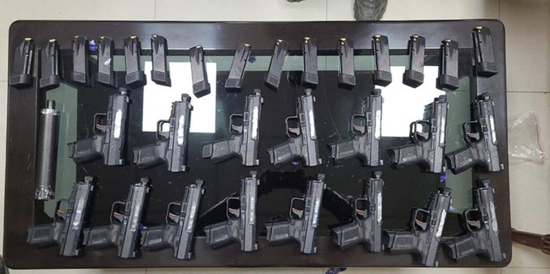 Fifteen pistols were recovered from the duo.