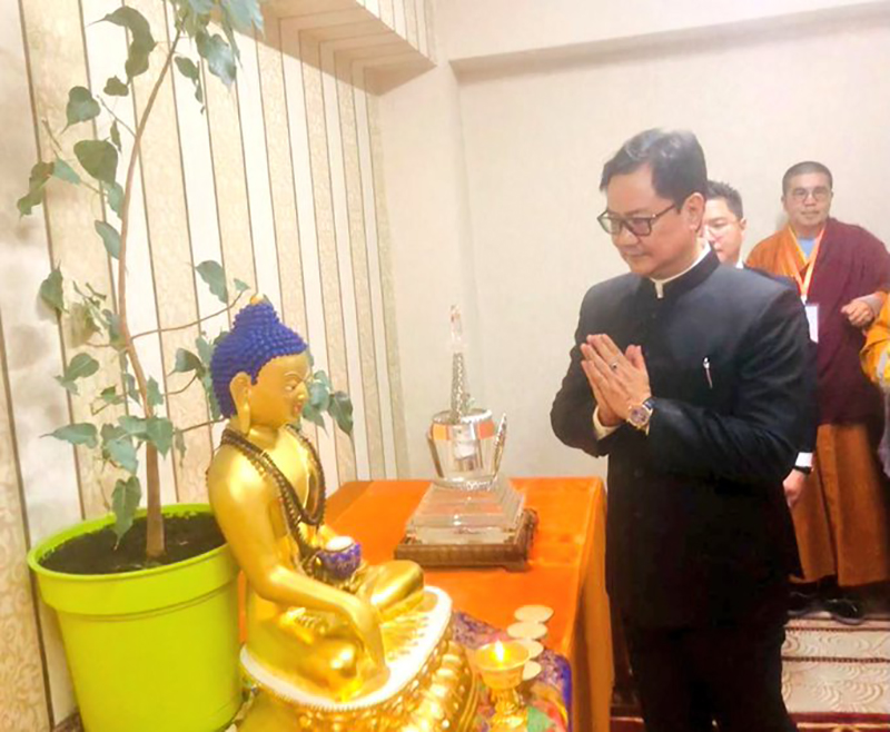 New Delhi: The Ganden Tegchenling Monastery, the centre of Mongolian Buddhists in Ulaanbaatar city, is planning to display the relics of Lord Buddha to be brought from India by a delegation led by Union Law and Justice Minister Kiren Rijiju on Monday.