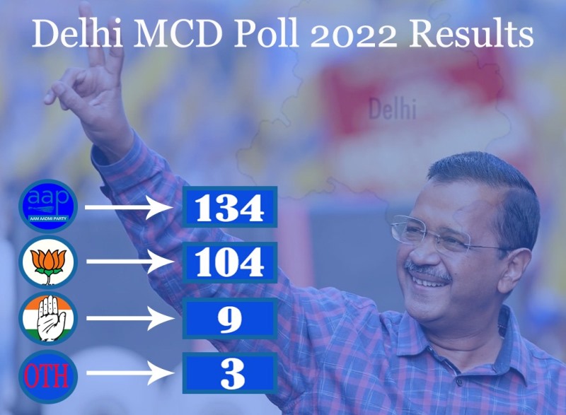 According to the State Election Commission (SEC), the Arvind Kejriwal-led AAP has won 134 seats out of the 250 wards. The BJP bagged 104 seats.