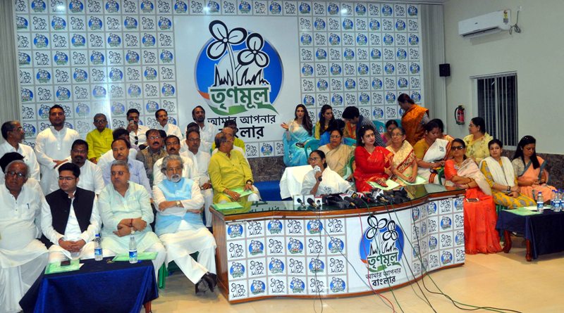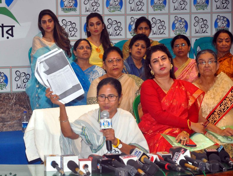 KOLKATA, MAR 13 (UNI) West Bengal Chief Minister Mamata Banerjee tete-a-tete with media persons along with posing LS candidates with male and female contestants on her both. in Kolkata on Wednesday.