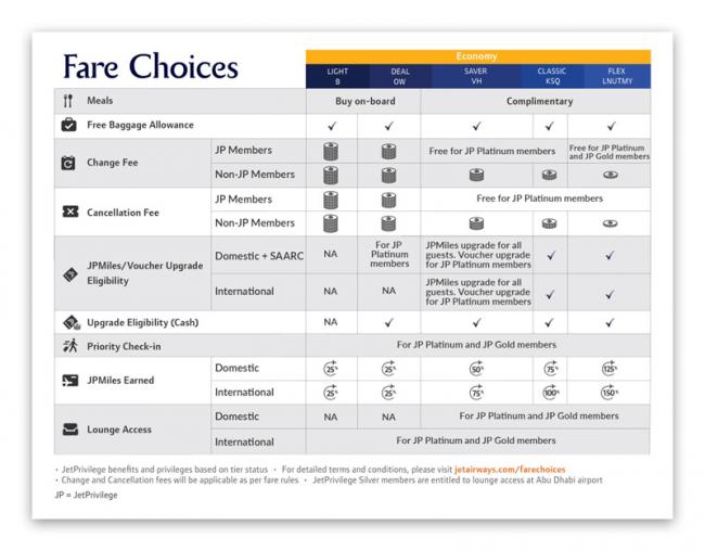 Jet Airways has now unbundled fares in ‘Light’ and ’Deal’ categories of Fare Choices in Economy for flights within India (domestic network), as consumer surveys clearly reveal that passengers want the flexibility of enjoying competitive fares with the options to buy meals.