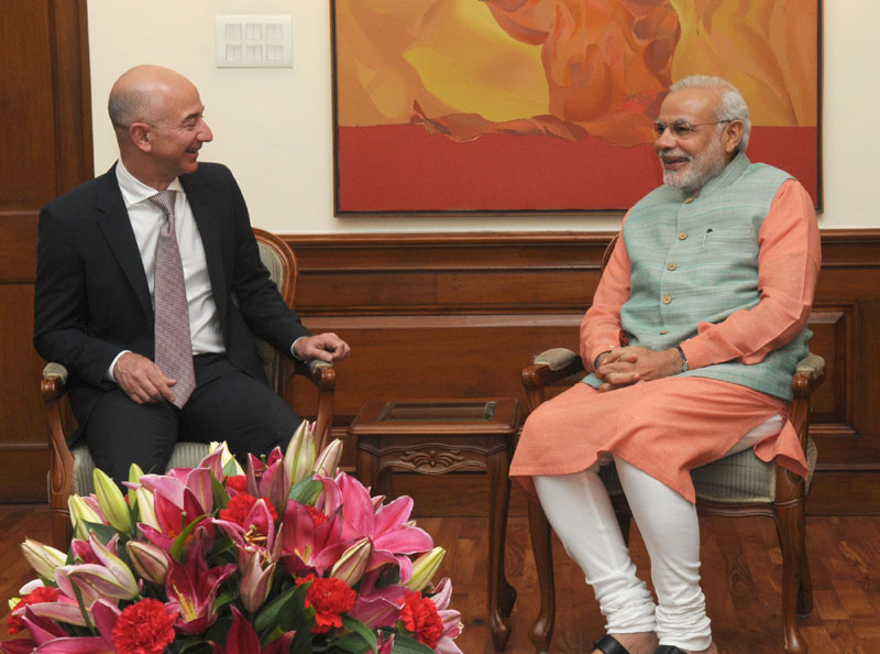 "Mr. Jeffrey P. Bezos, President, Chairman and CEO of Amazon.com, called on the Prime Minister, Shri Narendra Modi today," the Prime Minister's Office said in a statement on Friday.