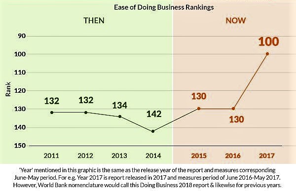 On Tuesday, after Union Finance Minister Arun Jaitley gave the details of the report, the Prime Minister's Office tweeted, "India has leapt 30 ranks over its rank of 130 in Doing Business Report 2017! The Report is an assessment of 190 economies, covers 10 indicators which span the lifecycle of a business. India has improved its rank in 6 out of 10 indicators & moved closer to global best practices."