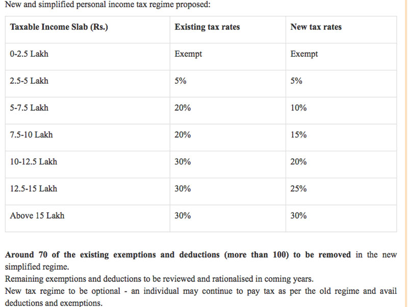 In order to provide significant relief to the individual taxpayers and to simplify the Income-Tax law, the Finance Minister has proposed to bring a new and simplified personal income tax regime, wherein income tax rates will be significantly reduced for the individual taxpayers who forego certain deductions and exemptions.
