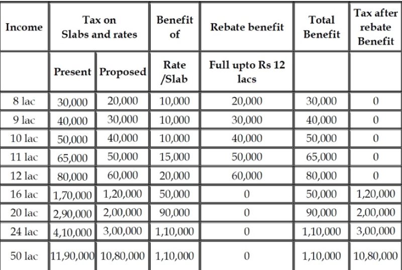 "Tax rebate is being provided in addition to the benefit due to slab rate reduction in such a manner that there is no tax payable by them," she added.