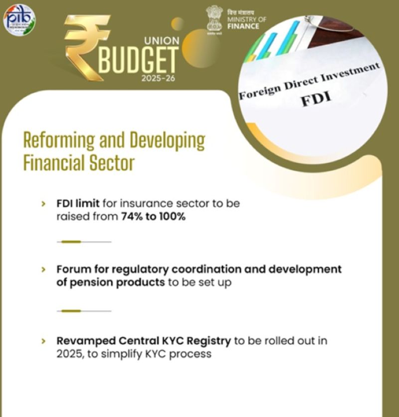 Union Budget: FDI limit for insurance sector raised from 74 to 100 percent