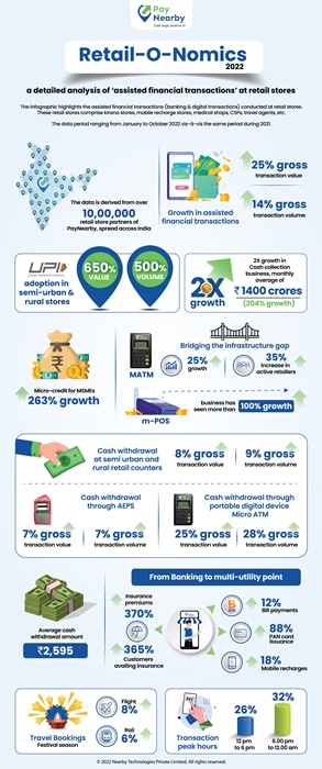 The insight was shared as part of the second edition of the pan-India report titled ‘Retail-O-Nomics’, released by PayNearby. The report has been prepared basis transactions across a million plus retail touchpoints throughout the country. The findings of the report are based on business data collected for a comparison period, ranging from January to October 2022 vis-à-vis the same period during 2021.