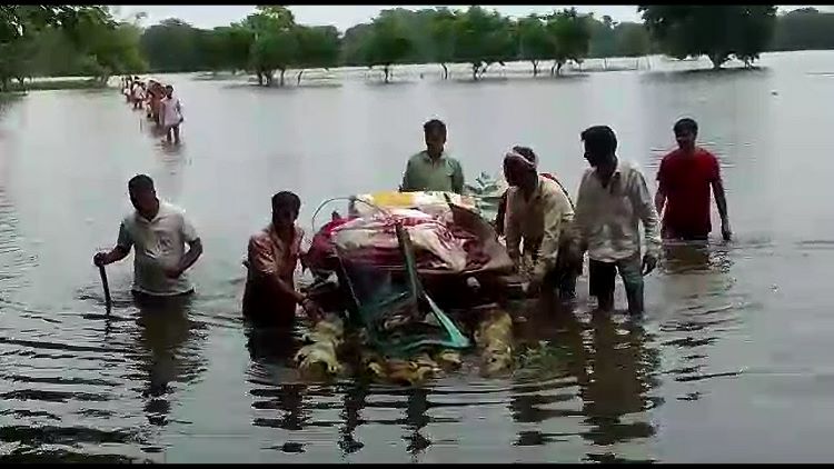 According to reports, a woman had died at Koroibari village, which is now underwater, and people had no space to cremate the body.