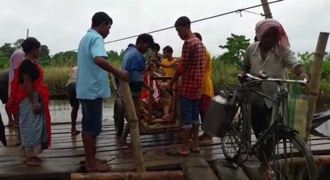 Guwahati, Aug 13 (IBNS): Two days ahead of India's 72nd Independence Day, in Assam the family members of a pregnant woman were forced to carry her to a government run hospital in a hand-cart by crossing three rivers and 9 km of roads.