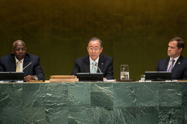 Before the Government officials spoke, the President of the General Assembly, Sam Kutesa, highlighted the two objectives of the meeting – to generate ambitious action on cutting gas emissions, increasing resilience and propelling the world towards a cleaner, greener economy, and to mobilize political will towards a meaningful, universal climate change agreement in Paris in 2015.