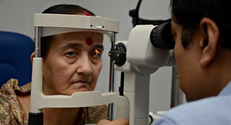 Dr Bhaskar Roy Chowdhury treating a patient suffering from corneal problem