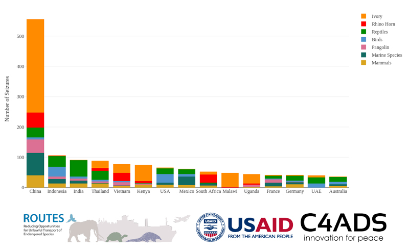 The ROUTES partnership is global and multi-sectoral international with aim to disrupt wildlife trafficking activities. The ROUTES dashboard uses open source wildlife seizure data to inform wildlife trafficking through airports, between 2009 and 2020.