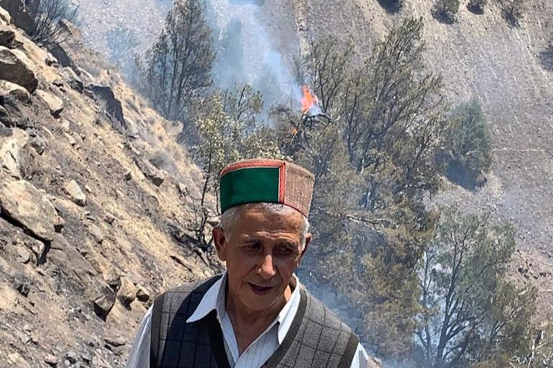 Roshan Lal from Jangi is worried about the damage to ecologically and economically important pine trees that were destroyed in the recent forest fire near his village. Photo by special arrangement.
