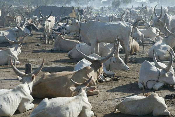 Cattle rest at a temporary camp near Rumbek, South Sudan. Photo: FAO/Jose Cendon