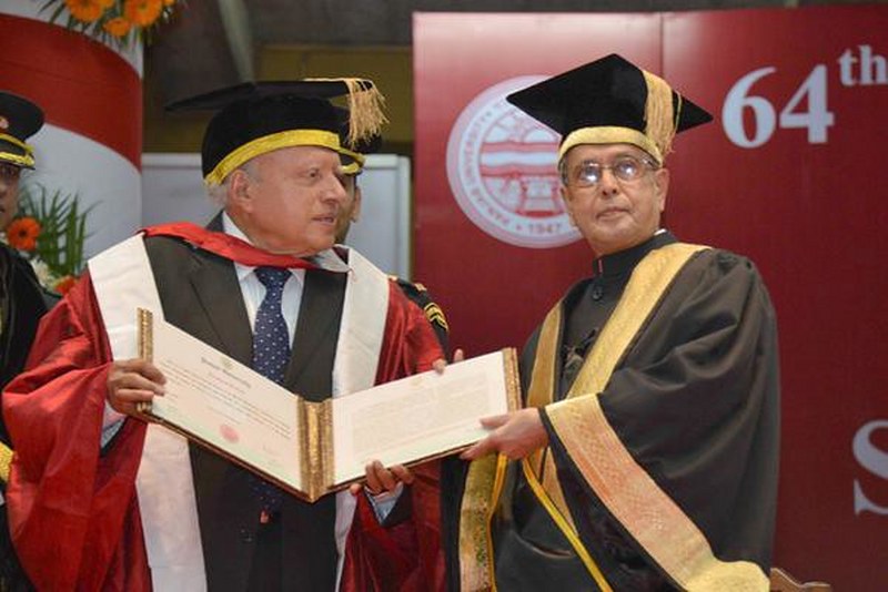 M.S. Swaminathan receiving a national award from then-President, Pranab Mukherjee in 2015. Photo by MSSRF/Flickr.