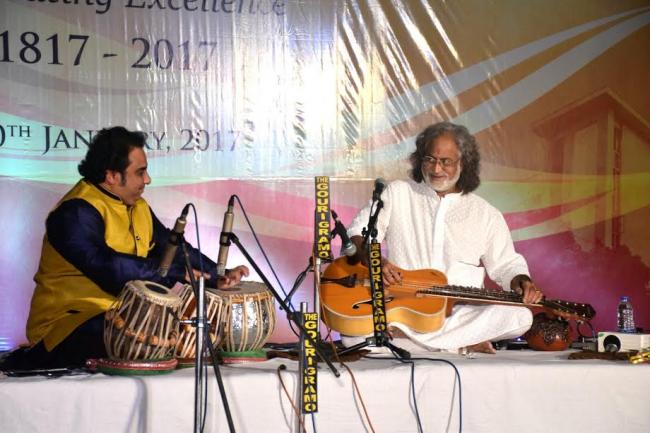Kolkata, Mar 9 (IBNS): Kolkata was treated to a veritable musical feast when Padmasree Pandit Vishwa Mohan Bhatt, and Gima Award winner and new-age percussionist Pandit Prodyut Mukherjee, recently came together to perform at the 200th Foundation Day celebration of the Hindu School.