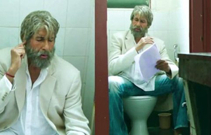It has caught on considering that even the great Bachchan does not think twice before barging into his political rival Boman Irani’s toilet when he is actually in ‘the act’ in Bhootnath Returns! He betters himself in Shamitabh by sitting on a commode and belting a song which could have been shot anywhere. In a recent episode of Comedy Nights with Kapil as a promotional for Shamitabh, both Bachchan and Kapil did the entire show seated on fancy commodes! The price of commodes must have gone up after this show!