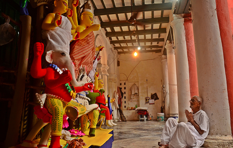 However, preparations are as usual and while the big and famous venues  known as  barowari or community  pujas dominate the scene to pay obeisance to the Shakti Goddess, the old and historical venues too have continued to hold forth with their hundreds of years’s existence.