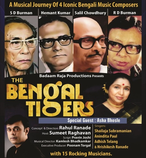 The show will feature some of the best talent in the music industry- Shailaja Subramanian, Anindita Paul, Adish Telang and Hrishikesh Ranade on vocal and a troupe of 15 musicians on melody and percussion instruments conducted by by Kamlesh Bhadkamkar. Conceived and directed by renowned music director Rahul Ranade, The Bengal Tigers goes beyond conventional film music shows, taking the audience on a trip of nostalgia and history behind each of their iconic songs.
