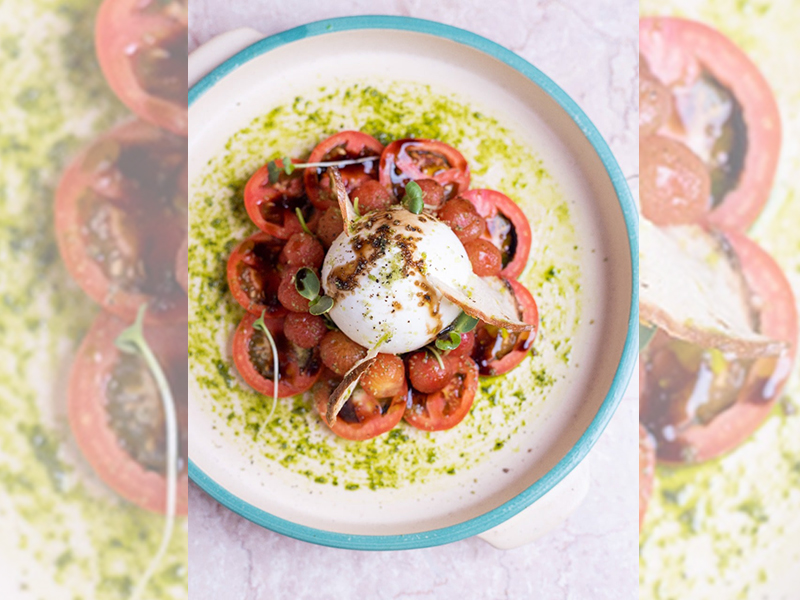 On the menu: Burrata Caprese, Pinkk's Mezze, Quatro Formaggi fondue platter, bagel burgers, rose pistachio tres leches, choux au craquelin, etc.