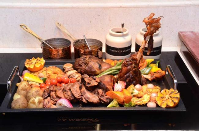 Some of the highlights of the feast are ‘Pomegranate Lacquered Roasted Turkey, ‘Roast Lamb Leg with Mint Jelly’ alongside desserts such as ‘Plum Cake’ and ‘Pecan Nut Tart’.