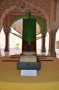 The beautiful leaf shaped kite made up of cloth displayed at the City Palace is grabbing eyeballs. The huge “charkis”(wooden wheels on which the strings were wound) used during the earlier era were on display at the City Palace