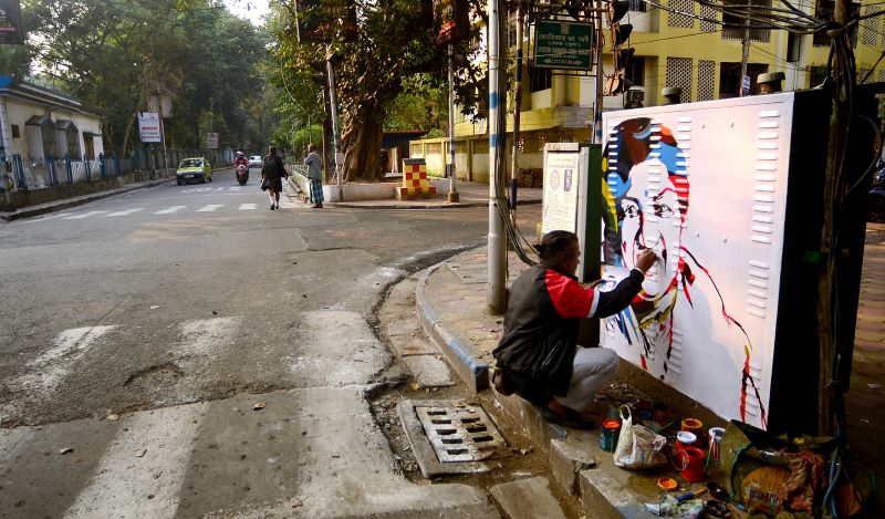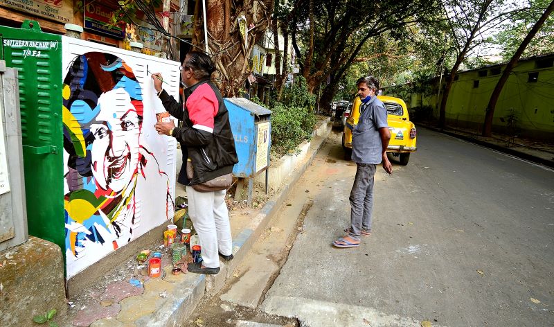 In several videos captured by IBNS, Das is seen painting a portrait of Mangeshkar on one street corner of Sarat Chandra Bose Road in south Kolkata. He chooses the city’s electricity boxes as his canvas.