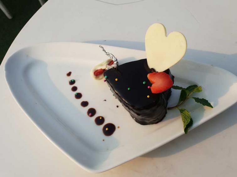 You can start your evening celebrations by indulging in a ‘Valentines special dessert for the lovers only’, a heart shaped choco-truffle cake decorated with heart shaped white chocolate and strawberry on the top.