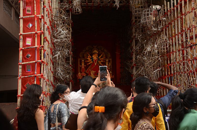 Well, it has been so for the last couple of years when rain has been playing spoilsport barging into what are supposed to be dry, autumn days. Old Molina Devi comments sardonically, “Isn’t it better to go back to the old Basanti puja? At least people could enjoy the festival without pulling a long face.”