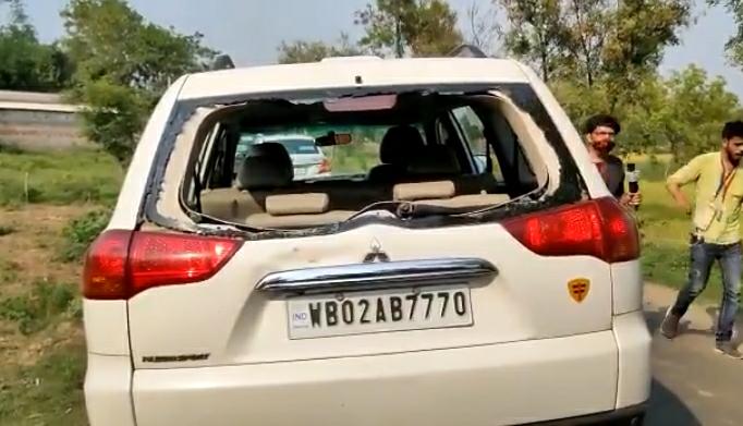 BJP's Bolpur candidate Anirban Ganguly came under attack in Ilambazar. His vehicle was vandalized allegedly by TMC workers. Ganguly escaped unhurt.