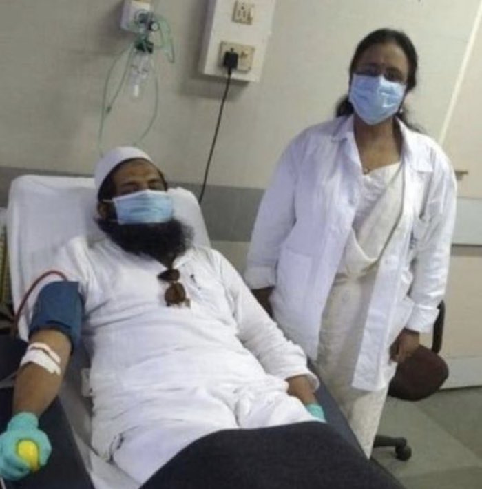 Image: A member of the Tablighi donating plasma for Covid-19 patients