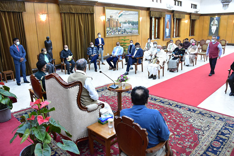 Imphal: Manipur Governor La. Ganesan convened a meeting of religious leaders of Sikh, Jain, Buddhist, ISKCON and LainingthouSanamahi Temple Board at Raj Bhavan in Imphal on Friday pertaining to COVID-19 vaccination.
