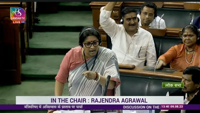 Union Minister Smriti Irani earlier accused Rahul Gandhi of blowing a "flying kiss" while leaving Parliament after his speech during the No-Confidence Motion debate in Lok Sabha.