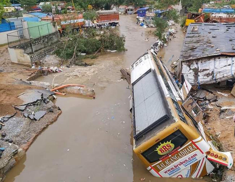 NDTV's journalist Uma Sudhir shared on her Twitter account a horrifying video of a man being washed away in the force of the floodwaters at Barkas near Falaknuma.