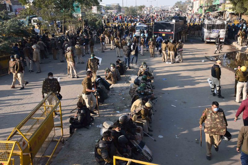 The police had earlier deployed hundreds of officers at different entry points to the national capital, parking trucks full of sand and laying barbed wire to block the farmers' path.