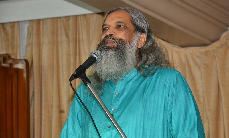 Swami Suparnananda Maharaj speaks at the function to remember Prof. SK Chakraborty. Photo: PR Team