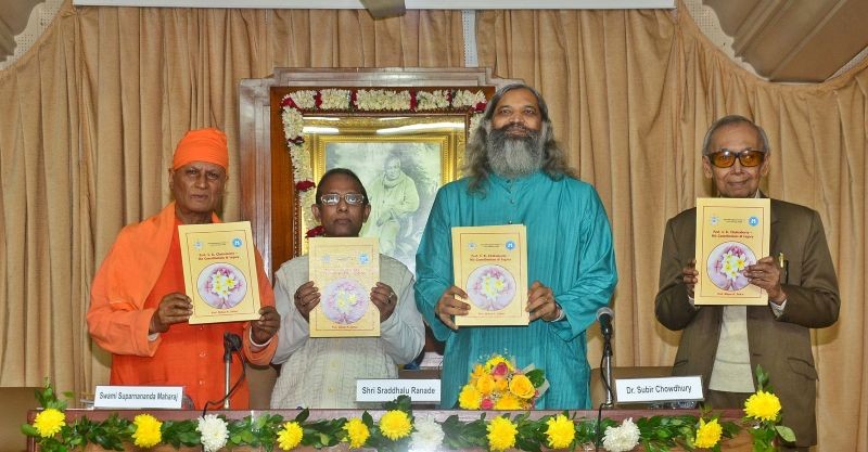 The eminent speakers release a monograph on the life and philosophy of late Prof. SK Chakraborty authored by his follower Professor Bidyut Kumar Sarkar (second from left). Photo: PR Team