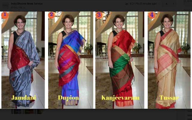 MaryKay Carlson is seen wearing Jamdani, Dupion, Kanjeevaram and Tussar in pictures shared by her on Twitter.