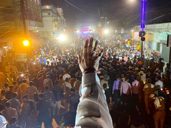 Shah led the roadshow for BJP candidate Hiron Chatterjee amid chanting of "Jay Shree Ram" and "Bharat Mata Ki Jay" by as hundreds and thousands of saffron brigade activists.