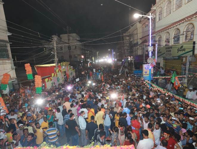Besides Shah, state president Dilip Ghosh and party national general secretary Kailash Vijayvargiya and candidate Hiron Chatterjee were on the roadshow.