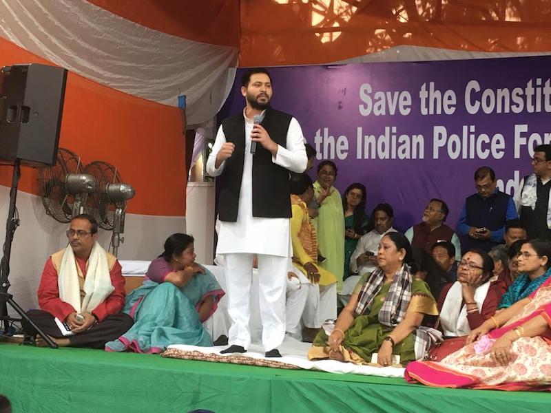Tejashwi appeared again on Tuesday in the dharna platform of Mamata and urged all to remove BJP from power and "save the country."