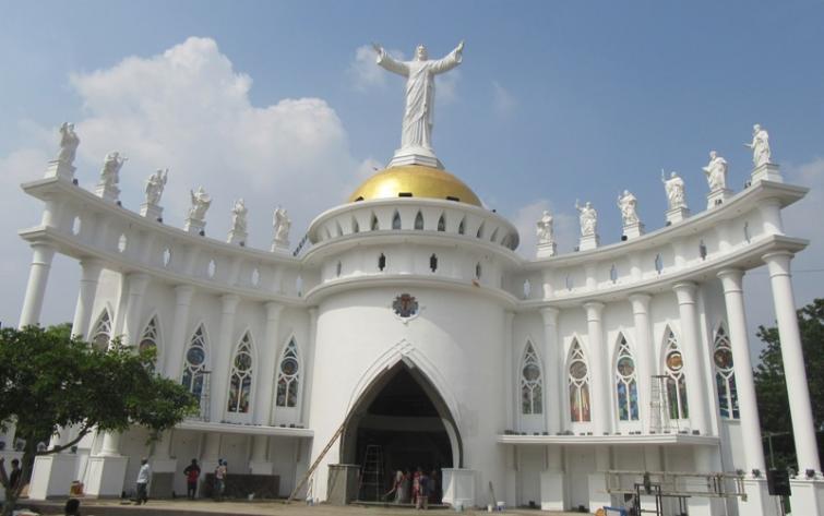 The visitors were welcomed by an impressive 30-foot-tall statue of Jesus with outstretched arms installed atop the dome of the Church. It is flanked by two wings of 12 colonnades above which are placed life size statues of 12 apostles, just like at St. Peter’s Basilica in the Vatican.