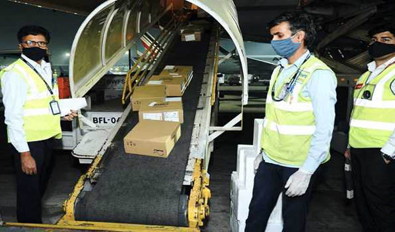 Bagchi also shared some pictures of the equipment being unloaded at the Delhi Airport.