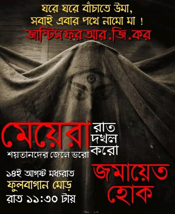 The entire state of West Bengal (ruled by the Trinamool Congress blamed for 'shielding the real culprits'), including the capital city Kolkata, is set to take over the public space at exactly 1130 pm to reclaim the women's right to safety and security.