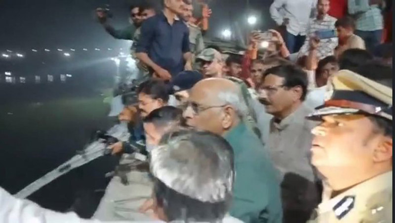 Morbi: At least 60 people died and several others were hurt when a British-era built cable bridge collapsed in Machchhu river in Gujarat's Morbi city on Sunday, media reports said.