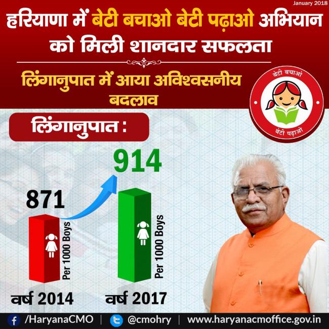 The official Twitter handle of the Chief Minister said: "Miracle of #BetiBachaoBetiPadhao Gender Ratio improves significantly in Haryana #BetiyonKaHaryana."