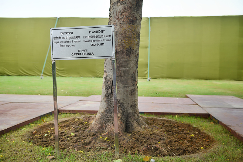 In 1992, H.H. Sheikh Zayed Bin Sultan Al Nahyan, the founding father of the UAE, planted an Amaltas (Cassia Fistula) sapling during his visit to India.